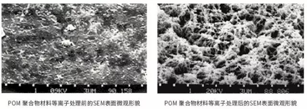 ±ðµÄ £¬µÈÀë×Ó¿ÌÊ´Ò²¿ÉÒÔÓ¦ÓÃÓÚ¾ÛºÏÎïµÄ¿ÌÊ´ £¬Í¼5չʾÁ˵ÈÀë×Ó¿ÌÊ´POM¾ÛºÏÎïÖÊÁÏǰºóµÄSEMͼ¡£¾­ÓɵÈÀë×Ó¿ÌÊ´ºó £¬POM¾ÛºÏÎïµÄÍâò±äµÃÅîËɶà¿× £¬´ó´óµÄÔöÌíÁ˱ÈÍâò   »ý¡£