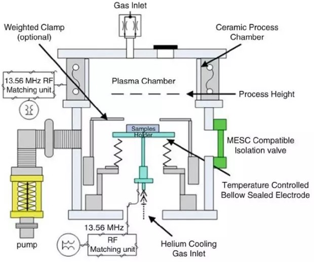 Á½¸ö¾ÞϸºÍλÖÃ¶Ô³ÆµÄÆ½ÐнðÊô°å×÷ΪµÈÀë×Ó±¬·¢µÄµç¼« £¬Æ½°å°²ÅÅÓڽӵصÄÒõ¼«ÉÏÃæ £¬RF ÐźżÓÔÚ·´Ó¦Æ÷µÄÉϵ缫¡£ÓÉÓÚµÈÀë×ÓµçÊÆ×ÜÊǸßÓڵصçÊÆ £¬Òò¶øÊÇÒ»ÖÖ´øÄÜÀë×Ó¾ÙÐкä»÷µÄµÈÀë×Ó¿Ìʴģʽ £¬¾ÙÐи÷ÏòÒìÐÔ¿ÌÊ´ £¬¿ÉµÃÏÕЩ±ÊÖ±µÄ²à±ß¡£ÁíÍâ £¬Ðýת¾§Ô²ÅÌ¿ÉÔöÌí¿ÌÊ´µÄÔȳÆÐÔ¡£¸Ãϵͳ¿ÉÉè¼Æ³ÉÅúÁ¿ºÍµ¥¸ö¾§Ô²·´Ó¦ÊÒ £¬¿É¶Ô¿ÌÊ´²ÎÊýϸÃÜ¿ØÖÆ £¬ÒÔ»ñµÃÔȳƿÌÊ´¡£